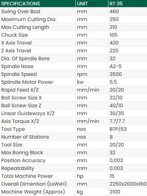 BSP Machineries does the sales and service of Linear CNC Turning Center, such as the RT-35 model, is a high-precision machine tool designed to efficiently manufacture a wide range of components through a combination of turning, drilling, milling, and threading operations.